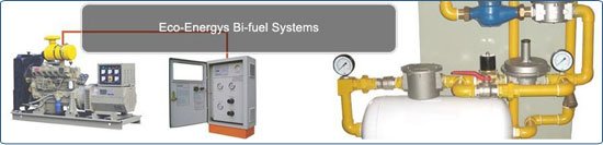 Eco-Energys now proudly Presents, Bi Fuel Systems amazingly run longer times at a cost only slightly higher than a diesel-only design giving it most effective place in Energy Converging field. Diesel Systems start on 100% diesel fuel, with addition of load, natural gas is added and the amount of diesel fuel is simultaneously decreased. Bi Fuel Systems typically operate on a mixture consisting mostly of natural gas and only enough diesel fuel to facilitate ignition.